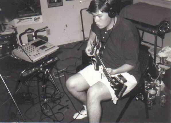 Beginnings on a Tascam 424 Published April 17, 2016 at 596 × 429 Early ’90’s picture of John recording demos on the Tascam 424 PortaStudio with his Eko Bass.